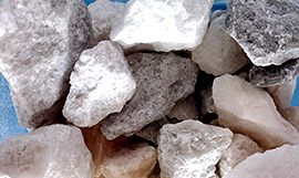 the feeding fineness of calcite bulk materials crushed by crusher to enter the mill ; the crushed small calcite material is sent to the silo by the hoist, and then evenly and quantitatively sent to the grinding chamber of the mill for grinding by the vibrating feeder.